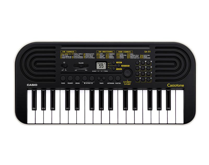 Casio SA-51 Kosketinsoitin on erinomainen valinta aloittelijoille ja lapsille kompaktin kokonsa ja helppokäyttöisyytensä ansiosta. 32 mini-kosketinta, 100 soitinääntä ja 50 rytmiä tarjoavat monipuoliset mahdollisuudet musiikin luomiseen. Sisäänrakennetut harjoitustoiminnot, kuulokeliitäntä ja kevyt rakenne tekevät siitä kätevän harjoitteluun ja matkalle.
